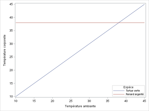 La relation entre la température interne d’un être vivant et la température ambiante diffère selon l’espèce : elle est nulle chez les mammifères et linéaire chez les reptiles. | La relation entre la température interne d’un être vivant et la température ambiante diffère selon l’espèce : elle est nulle chez les mammifères et linéaire chez les reptiles. | ||
