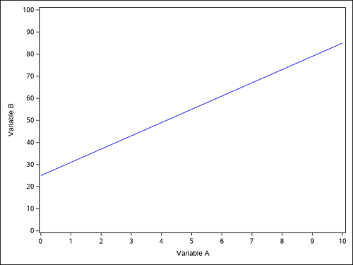 Graphe de la fonction de droite b = 6a + 25.