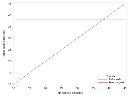La relation entre la température interne d’un être vivant et la température ambiante diffère selon l’espèce : elle est nulle chez les mammifères et linéaire chez les reptiles.